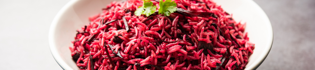 This colourful beetroot biriyani is a clever twist on the classic Indian dish. The natural sweetness of beetroot balances perfectly with the variety of spices to make a flavoursome meal. Serve with your favourite chutney. For a heartier meal, serve alongside a mild vegetable curry.