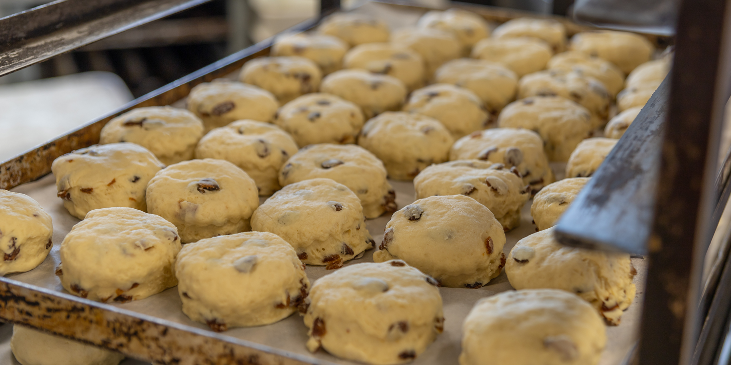 Using flour milled in the Cotswolds, our bakers make at least 20 different types of bread on the premises, completely from scratch. Fruited teacakes are also available. Our Bakery team also work hard to produce all of the bread you enjoy in our Restaurant and at our Sandwich Bar counter.